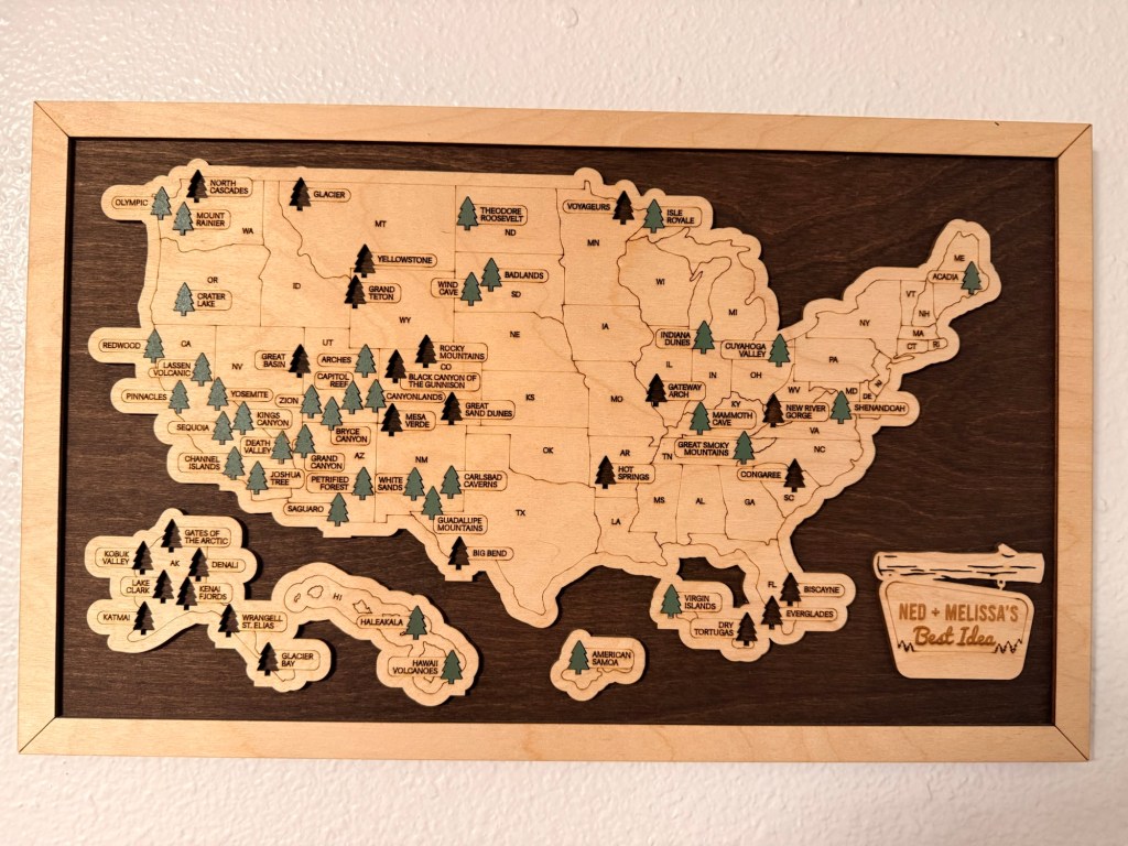 We do not camp or climb or even particularly hike. But we look and lodge. Current tally: 40 / 63.